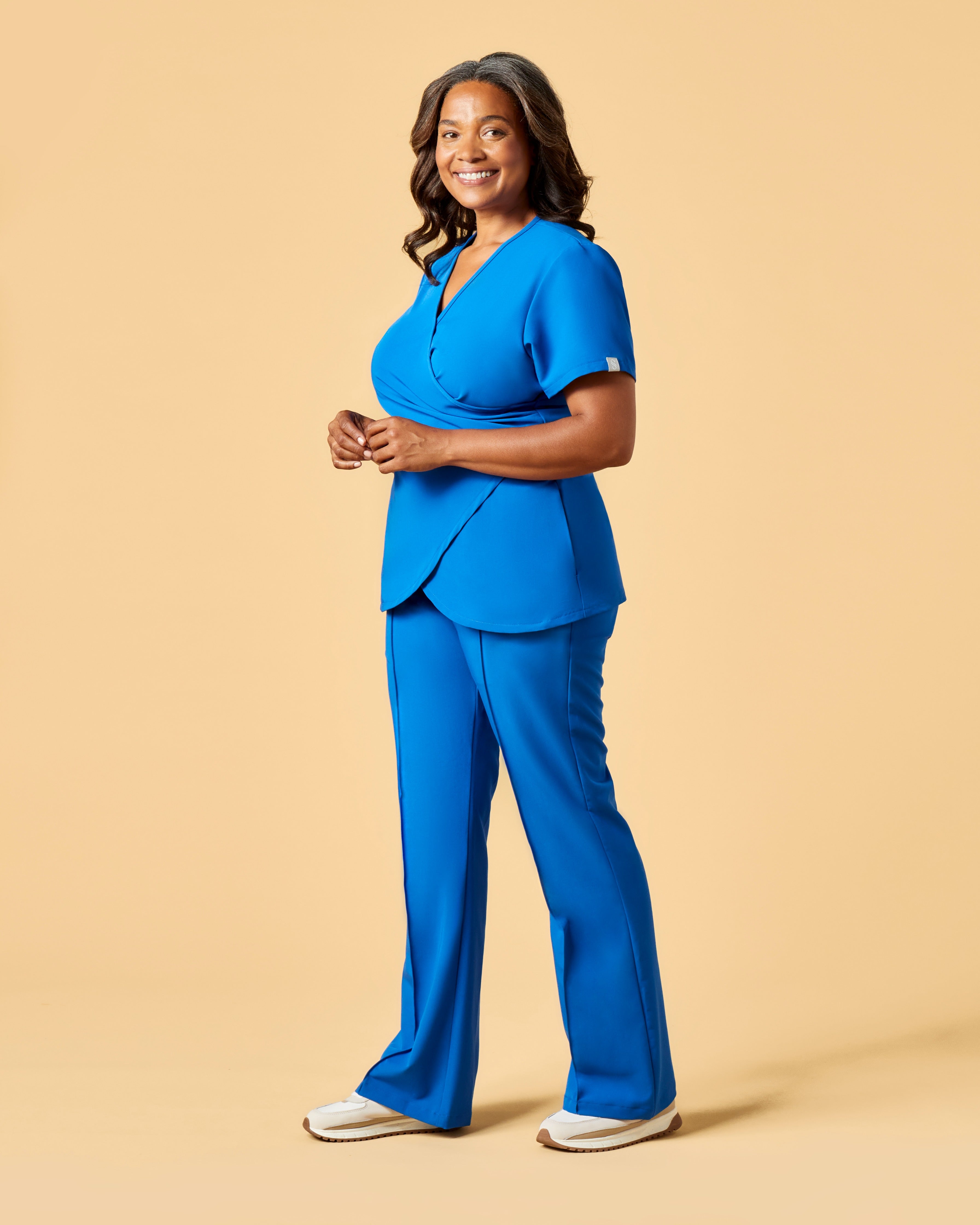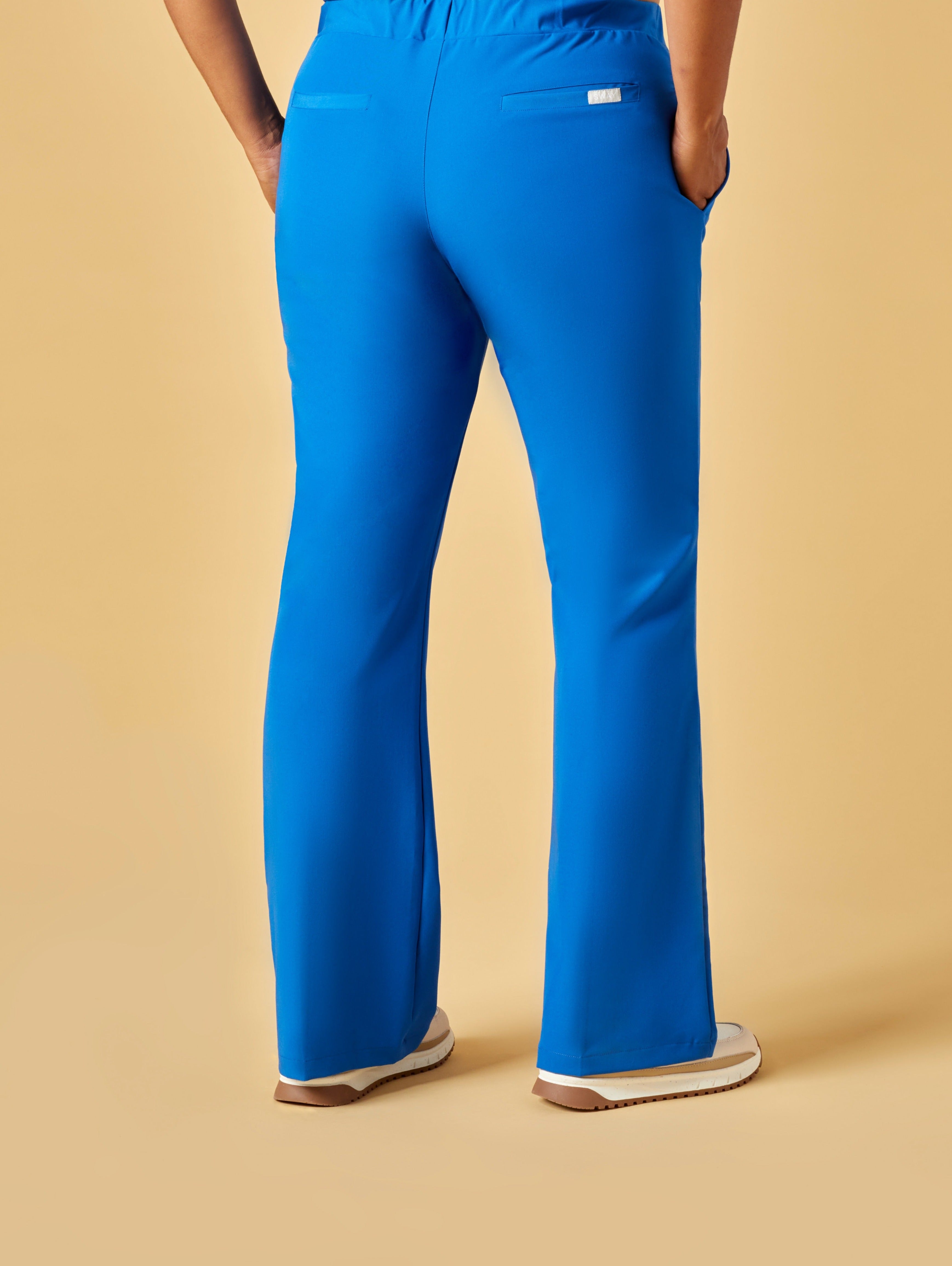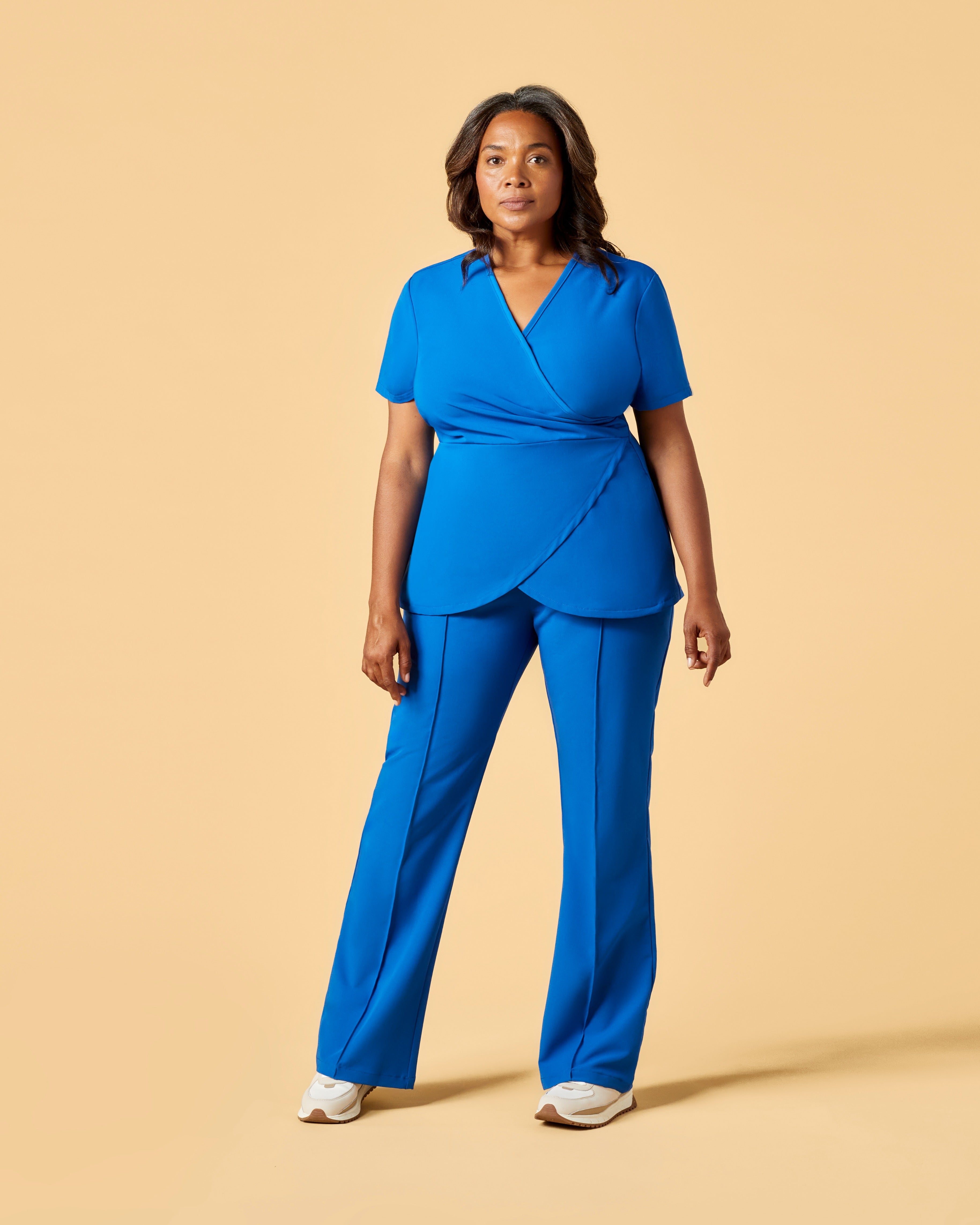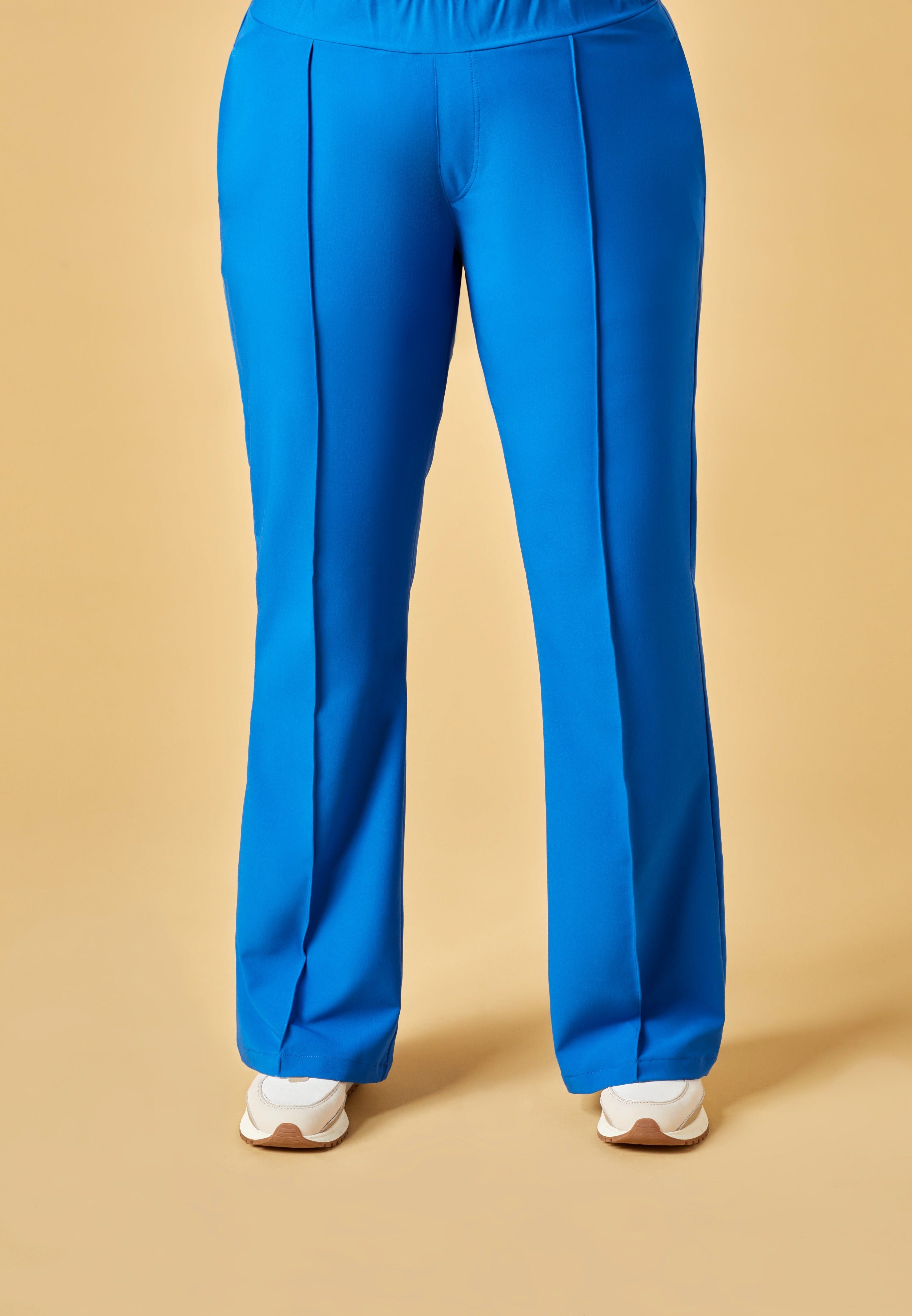 The convenience of pull-on pants with the style of a trouser. These smart-casual scrub bottoms feature pin-tuck detail along the front, four pockets, and a discrete waistband with hidden drawstring for extra comfort.