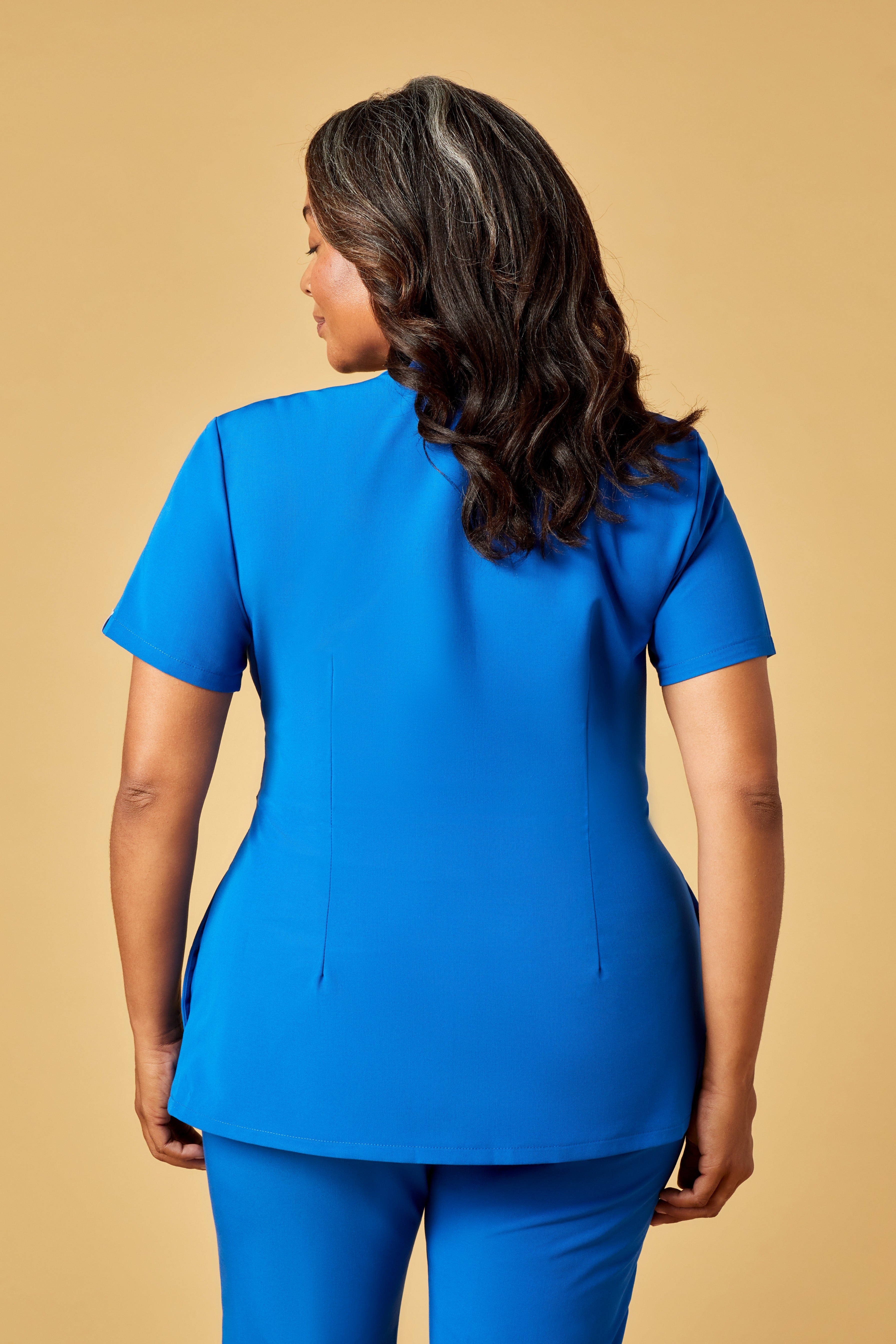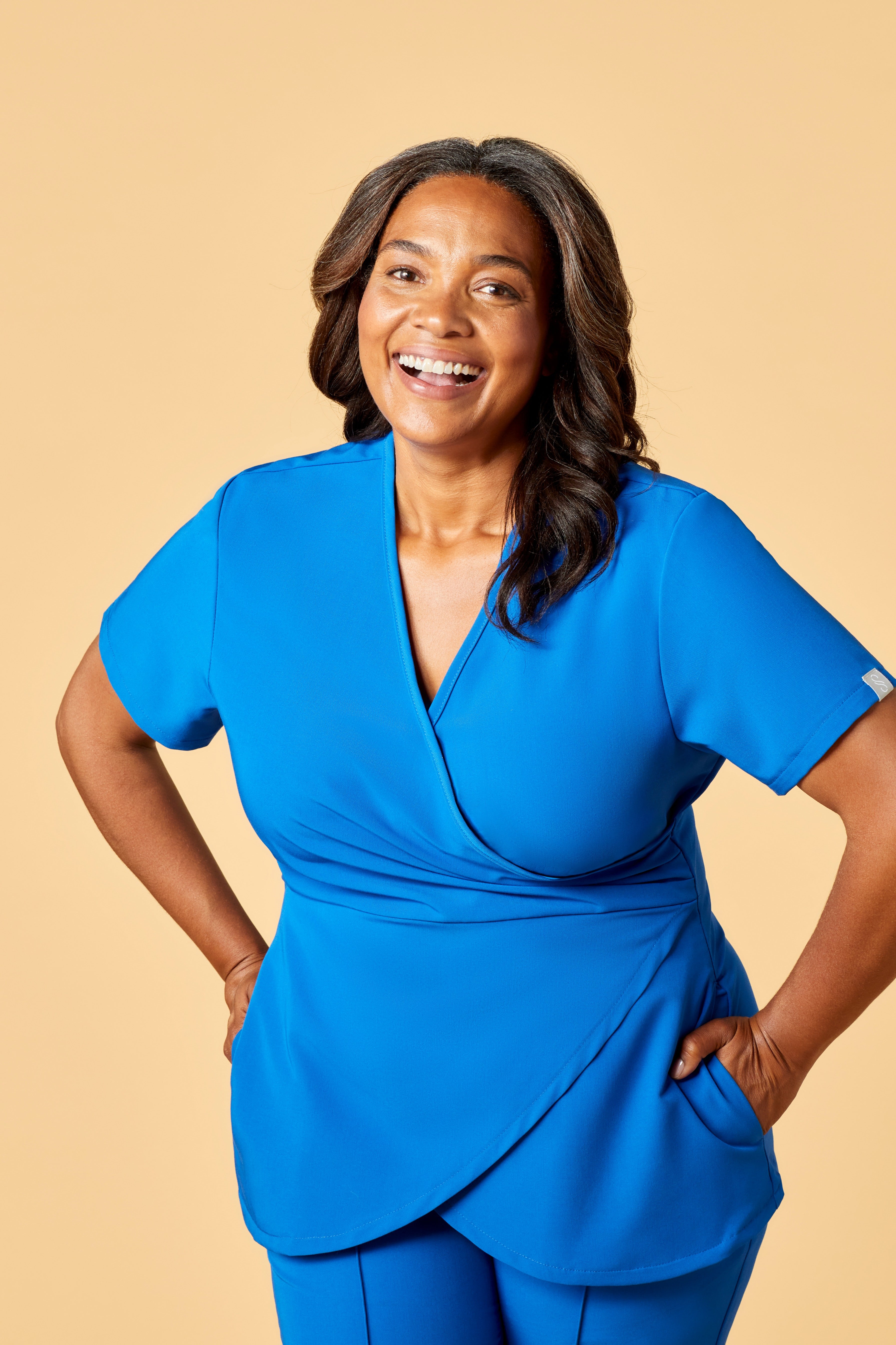 Our crossover top creates an effortlessly chic look. Its subtle draping and waistline seam provide a figure flattering fit, with hidden side pockets for functionality. Paired best with our pin tuck or skinny pant.